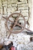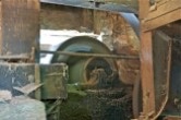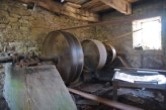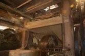 L’intérieur du moulin conserve, en mémoire du passé, la machinerie qui a servi à actionner la scie à cadre dite «le Haut Fers» pendant plus de cent ans.